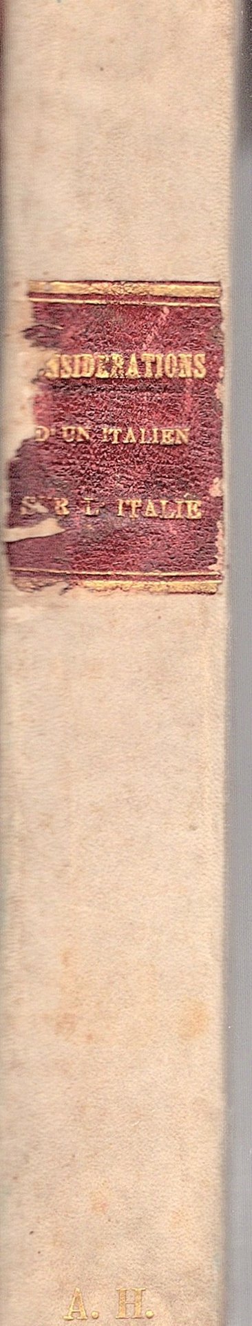 Considerations d'un Italien sur l'Italie ou mémoires sur l'état actuel des lettres et des arts en Italie et le caractere de ses habitants. Précédés d'une lettre sur le tour de l'Allemagne, la Suisse et la Savoie LEGATO INSIEME A Pièces diverses servant de suite aux consideratins d'un italien sur l' Italie