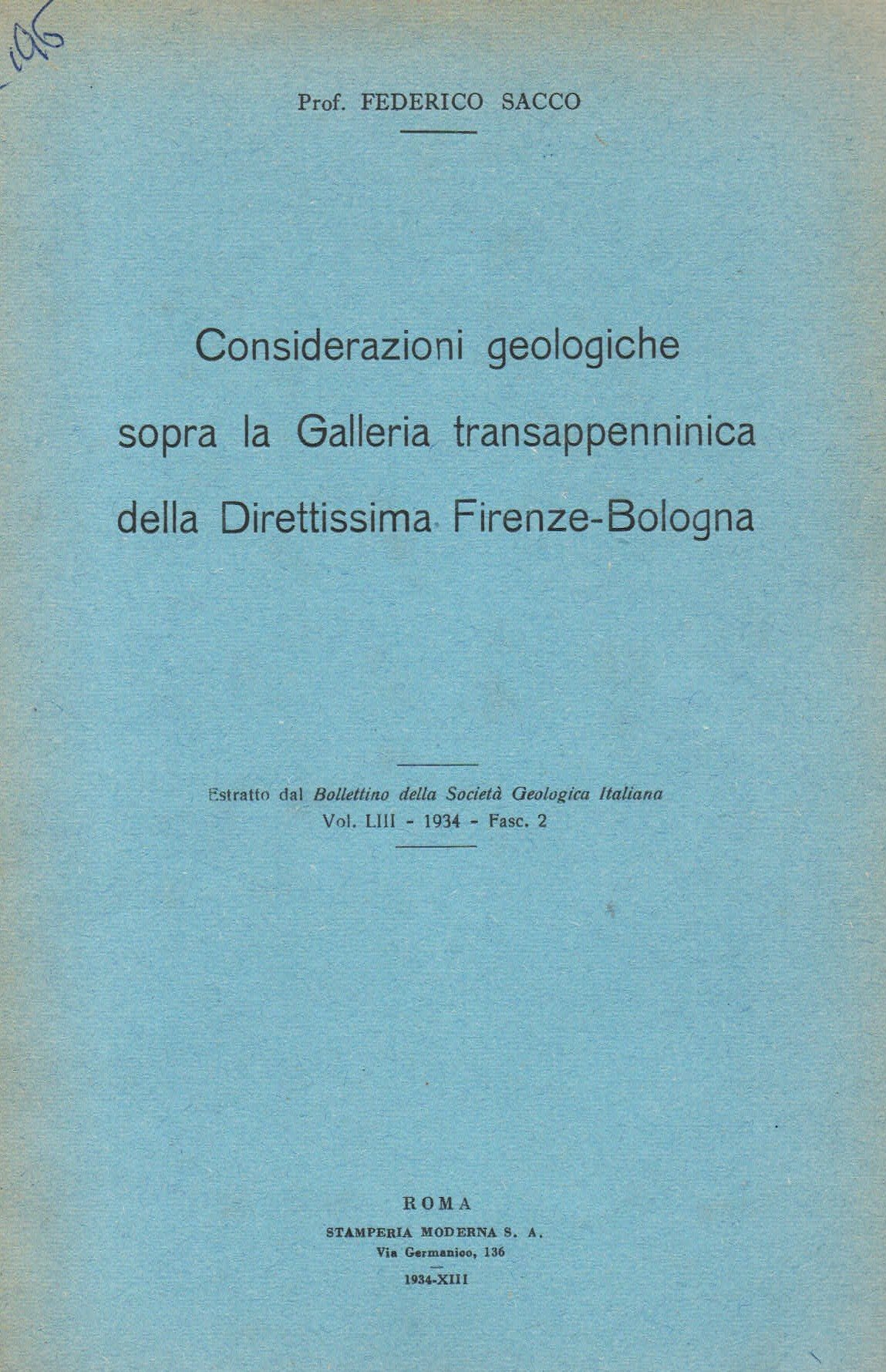 Considerazioni geologiche sopra la Galleria transappenninica della Direttissima Firenze-Bologna