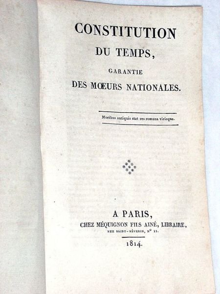 CONSTITUTION du temps, garantie des moeurs nationales.