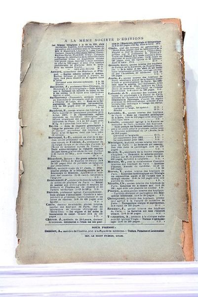 197 pages (16x25cm). Couverture imprimée usagée. Plat supérieur entièrement dérelié. Petites déchirures dans les marges. Papier bruni. Exemplaire non rogné. Envoi de l'Auteur à la page de titre. Nombreuses Illustrations in-texte.