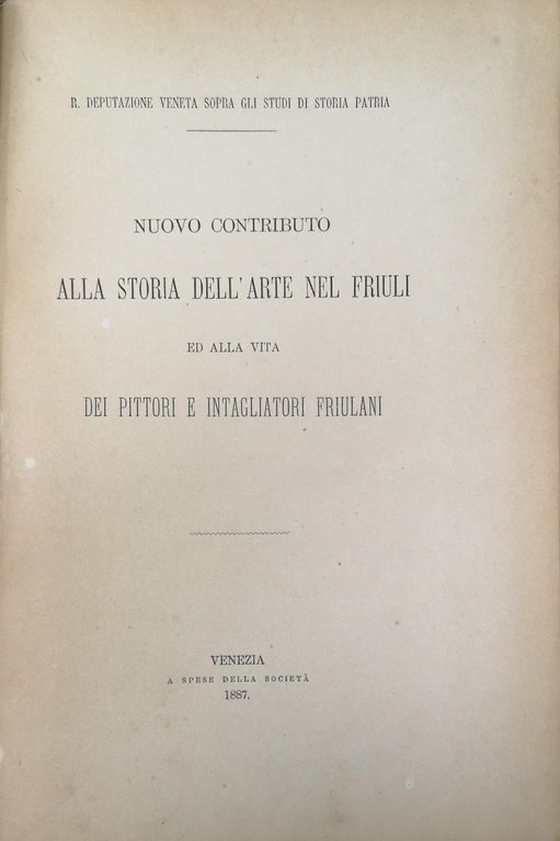 CONTRIBUTO ALLA STORIA DELL'ARTE NEL FRIULI. - R. Deputazione Veneta di Storia Patria - Accademia di Scienze, Lettere e Arti, Udine.