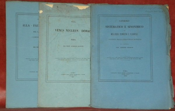 Contribuzione alla Fauna mediterranea del litorale Romano “Lamellaria” nova Species. Sulla Venus Nucleus Donati. Catalogo sistematico e sinonimico dei molluschi terrestri e fluviatili Estratto atti dell’Academia Pontifica de nuovi Lincei.