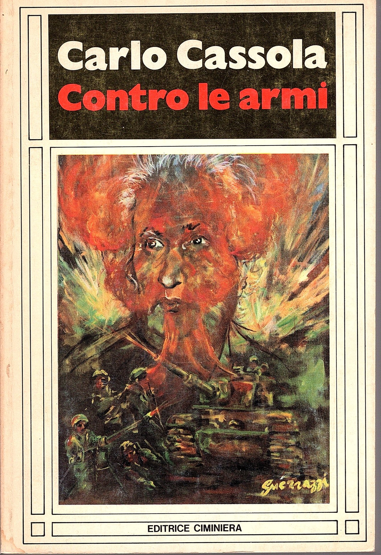 In-8°, pp. 163, (1), brossura editoriale con titoli a due a colori al dorso e al piatto illustrato con dipinto di Vincenzo Guerrazzi.' Ottimo esemplare entro velina. Edizione originale di questo saggio di critica politica e di teoria del pacifismo e antimilitarismo, quanto mai attuale, che ispirantesi ai grandi difensori concettuali delle pace com Bertrand Russell e Einstein non dimentica però di ricostruire l'evoluzione della nozione di pace nell'italia del dopoguerra. Cfr. Gambetti-Vezzosi, p. 200.