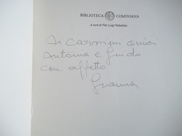 BIBLIOTECA COMINIANA 1992 BROSSURA 24 X 17 PP. 58 BUONE CONDIZIONI, PIATTI CON SEGNI DI SPORCO IL PARTICOLARE QUELLO POSTERIORE, DEDICA DELL'AUTRICE ALLA PRIMA PAGINA.