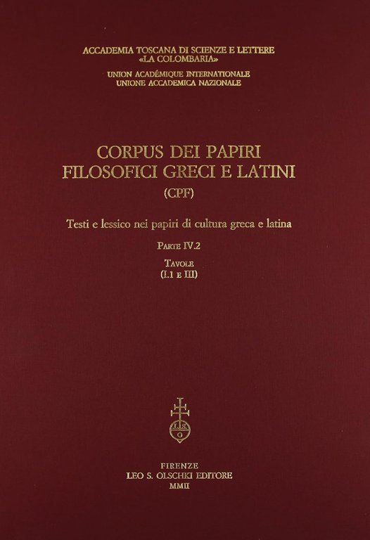 Corpus dei papiri filosofici greci e latini (cpf), Testi e lessico nei papiri di cultura greca e latina. Parte IV. 2 Tavole (I.1 e III)