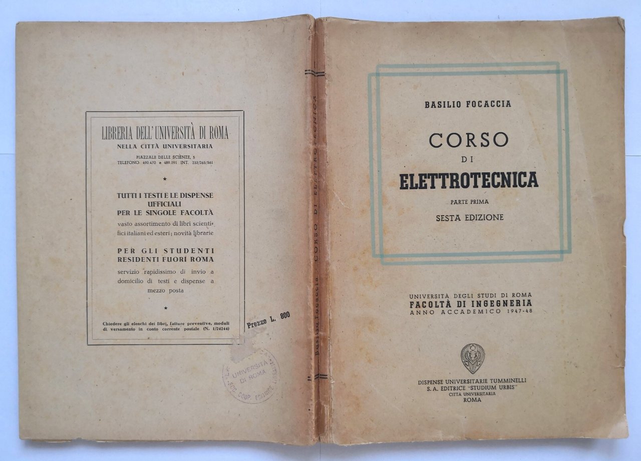 CORSO DI ELETTROTECNICA parte 1 di Basilio Focaccia 1948 Tumminelli Libro I