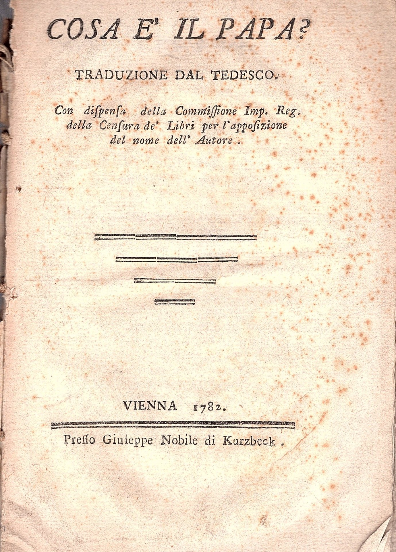Cosa è il Papa? Traduzione dal tedesco. Con dispensa della Commissione Imp. Reg. della Censura de' Libri per l' apposizione del nome dell' Autore
