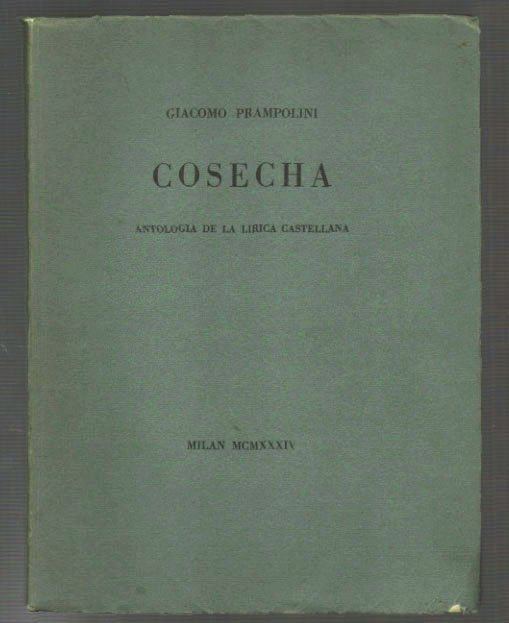 LIBROPrima edizione.CON AUTOGRAFO.Leggera mancanza al piede del piatto anteriore della sovracoperta, ma davvero un ottimo esemplare. Copia 1 di 200 fuori commercio numerate a mano. A pagina 51 intervento manoscritto autografo a matita del curatore ad aggiungere una stanza completa al «Cantares».Si tratta della prima antologia italiana di lirica castigliana del Novecento, precede di sette anni la ben più nota «Antologia dei lirici spagnoli» di Carlo Bo. Raccoglie: Romancero, Cancionero, Cantares, e selezioni da Machado, Jimenez, Moreno Villa, R. Buendia, Salinas, Guillen, D. Alonso, Larrea, G. Diego, Garcia Lorca, Alberti, Villalon, Prados, V. Aleixandre, Cernuda, Altolaguirre, Luelmo, Laffon.