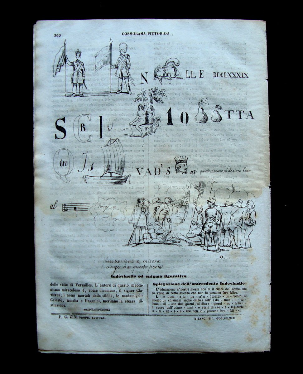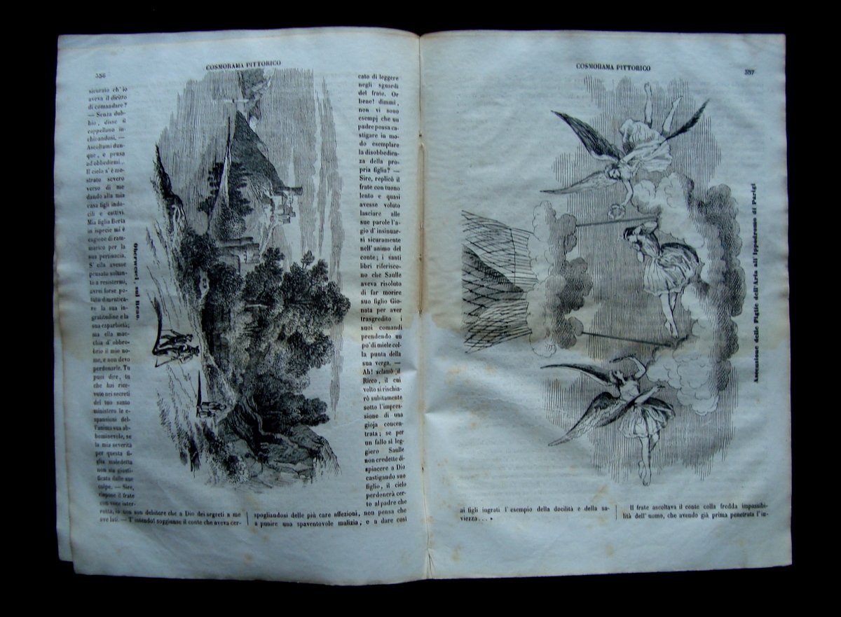 Rivista, Cosmorama Pittorico. Anno Decimoquinto N. 43 9 Novembre 1850 Tipografia Guglielmini, Milano 1850; 28x20 cm; pp. da 354 a 360. Belle Incisioni. Condizioni di conservazione. Esemplare in buono stato con leggere tracce d'uso e del tempo. Tracce di precedente legatura in quanto facente parte di vecchia raccolta di documenti rilegati insieme.Sciolto. Leggera gora che interessa tutto il documento. Ascensione delle Figlie dell'Aria all'Ippodromo di Parigi. SC03.D14657 blu