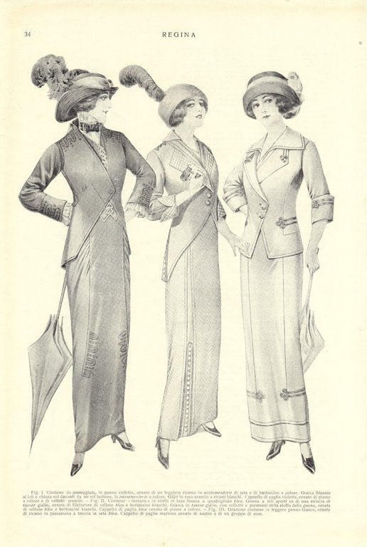 Costume da passeggiata, costume fantasia; costume leggero. Immagine 1913.