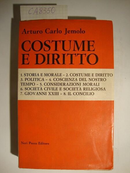 Costume e diritto (1. Storia e morale - 2. Costume e diritto - 3. Politica - 4. Coscienza del nostro tempo - 5. Considerazioni morali - 6. Società civile e società religiosa - 7. Giovanni XXIII - 8. Il consiglio)