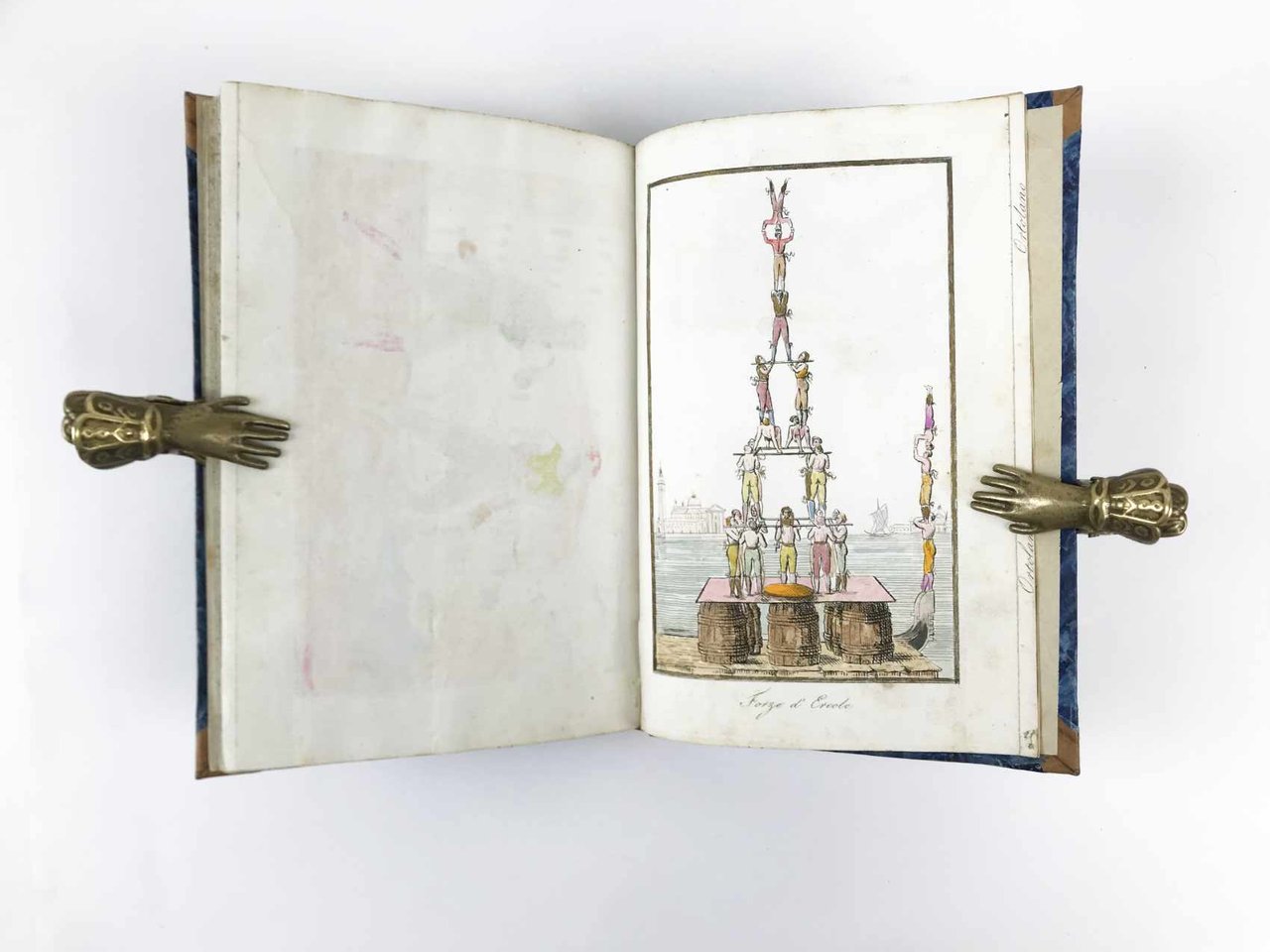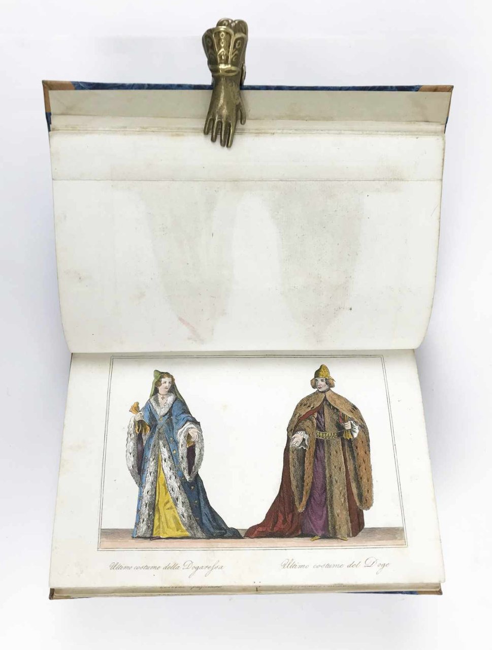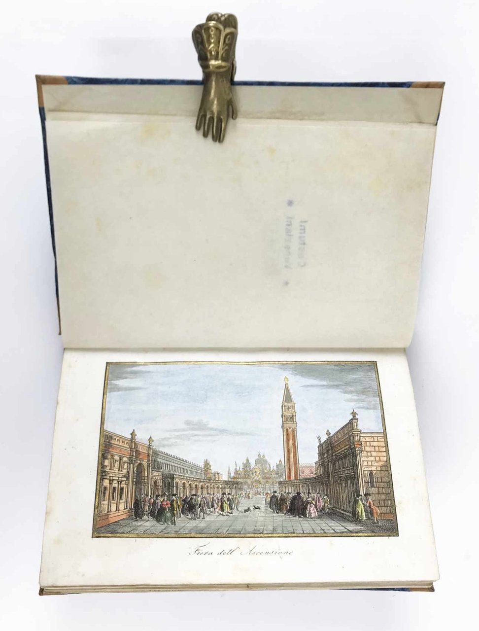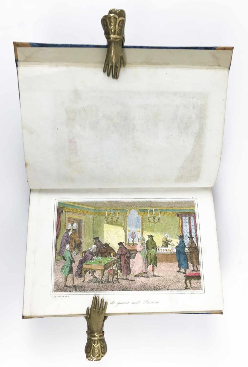LIBROBellissima edizione illustrata.Ottimo esemplare, leggermente rifilato al margine destro di alcune tavole.Raccolta di 48 tavole titolate, (120 x 100 mm alla battuta), fine secolo XVIII, incise da Zuliani, Buttazzon, Pogiani Bodiani e Bernasconi con costumi d’epoca, vedute di Venezia.