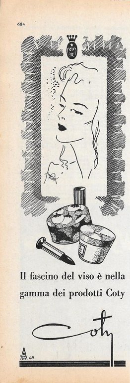 Coty. Il fascino del viso è nella gamma dei prodotti Coty. Advertising 1947