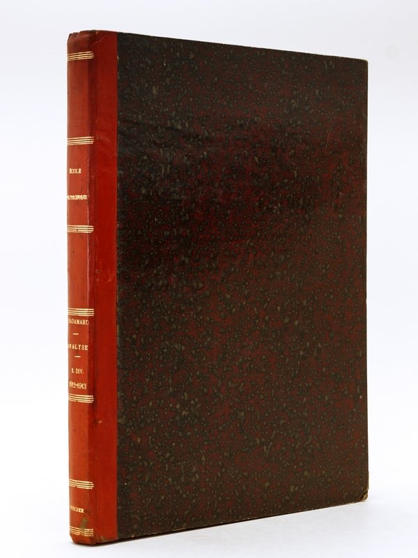 E.O. 1 vol. grand in-4 reliure de l'époque demi-basane rouge, [ Ecole Polytechnique ] 1912 - 1913, 456 pp. Rare et bon exemplaire du premier cours d'analyse donné par le célèbre mathématicien Jacques Hadamard à son entrée comme professeur à Polytechnique en 1912. Bon état (petit mq. à un f. antérieur à la reliure et n'affectant pas le texte, reliure très lég. frottée).