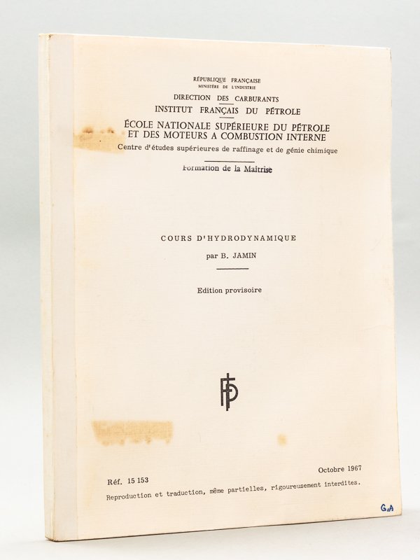 1 vol. in-4 thermocollé, Institut Français du Pétrole, Ecole Nationale Supérieure du Pétrole et des Moteurs à Combustion Interne, Formation de la Maîtrise, Octobre 1967, 71 pp. Etat satisfaisant (anciennes traces d'adhésif en garde et couv., annotations d'étudiant au stylo).
