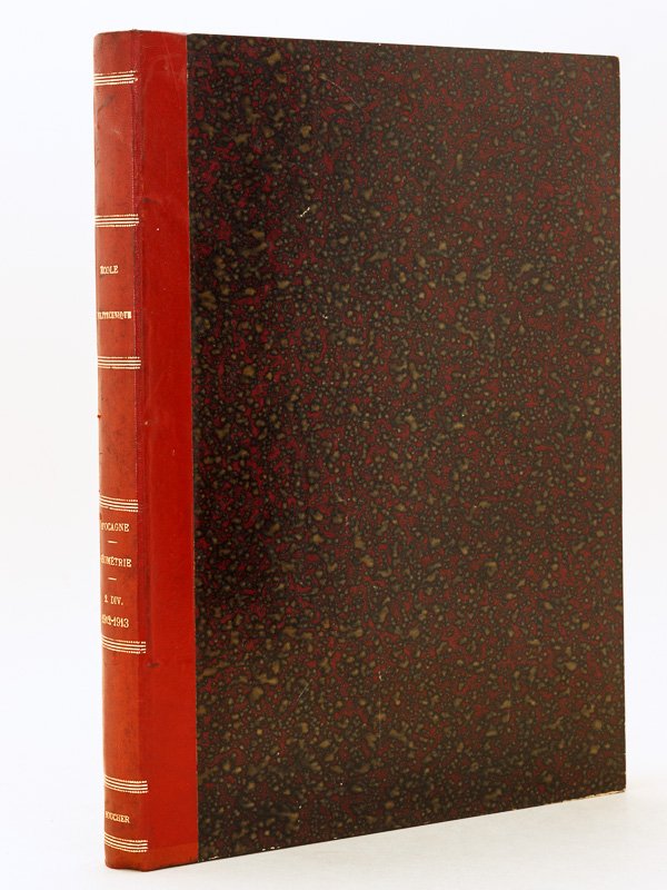 1 vol. grand in-4 reliure demi-basane rouge, Cours de Géométrie. Ecole Polytechnique. 2e Division. Année 1912-1913, 499 pp. et ff. Bon état (très petite mouill. aux premiers ff. en queue, très bon état par ailleurs). Il s'agit du premier cours de Maurice d'Ocagne comme titulaire de la chaire de géométrie à Polytechnique, où il était rentré en 1893 comme répétiteur d'astronomie et de géodésie.