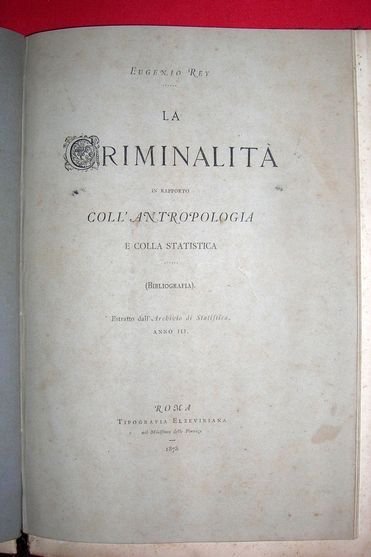 Criminalità in rapporto coll’Antropologia e colla Statistica. (Con altri 5 opuscoli dello stesso autore).