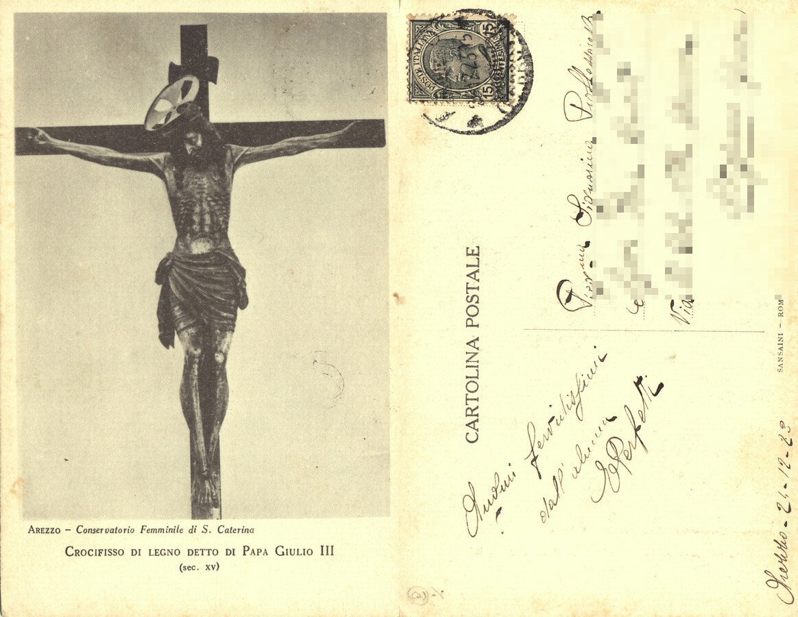 Crocifisso di legno detto di Papa Giulio II. Arezzo. Viaggiata 1923
