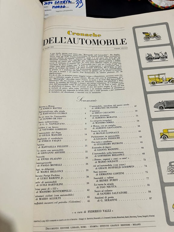 In folio, br. edit. ill. a col., pp. 88. Bella bubblicazione, ill. intercalate n.t. + numerosi contributi di scrittori e giornalisti del periodo: Enrico Mattei, Sandro De Feo, Enrico Falqui, Ennio Flaiano, Luigi Bartolini, Massimo Bontempelli, Armando Silvestri, Alberto Maravia, Gianna Manzini, Mario Soldati ed altri.