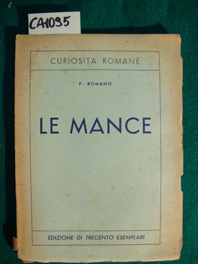 (Collana : Curiosità Romane) Edizione di trecento esemplari - DETTAGLIO DELLE CONDIZIONI : Fioriture sparse alla copertina editoriale; strappetto al piatto anteriore, abrasione con carenza al dorso. Minute fioriture sparse nelle pagine - (33g).