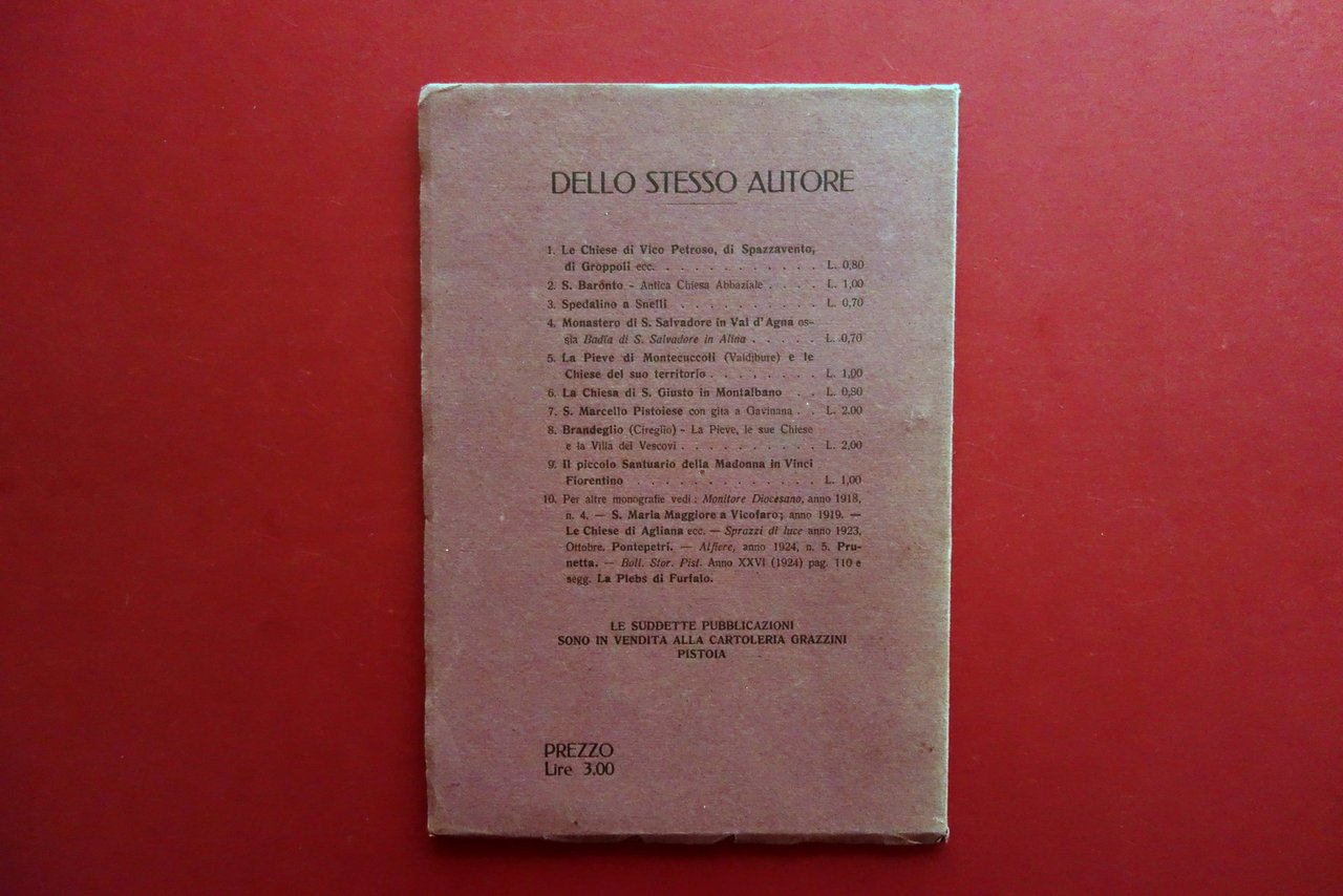 Stabilimento Tip. Guido Grazzini, Pistoia 1925; cm 25x17; pp. 32 con 10 ill. in b/n fuori t.; brossura ed. con una ill. fotogr. in b/n applicata alla brossura ant. Al frontespizio bella dedica a penna blu.