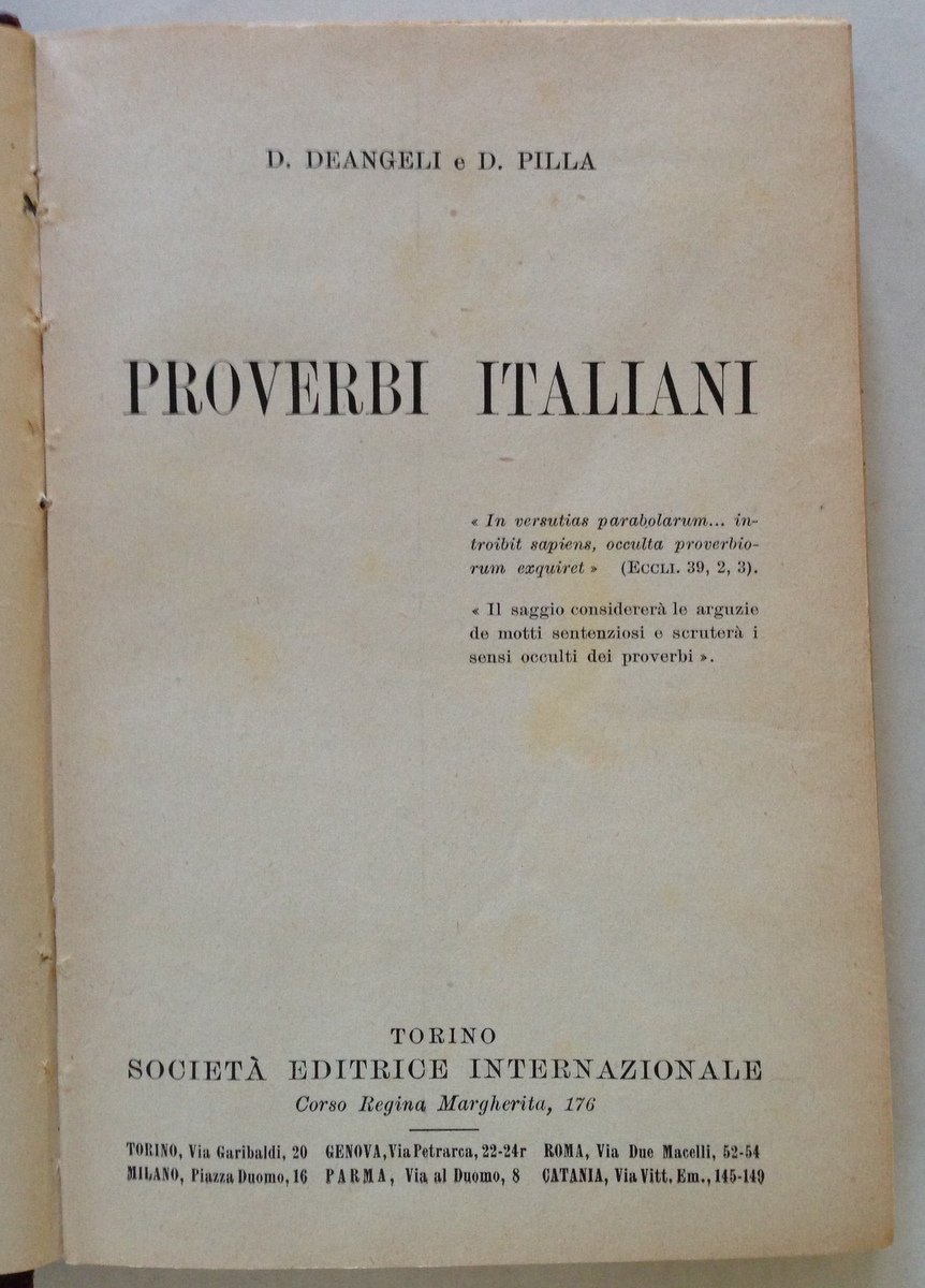 D. Deangeli D Pilla Proverbi Italiani Dialoghi Saggezza Popolare SEI Torino 1938