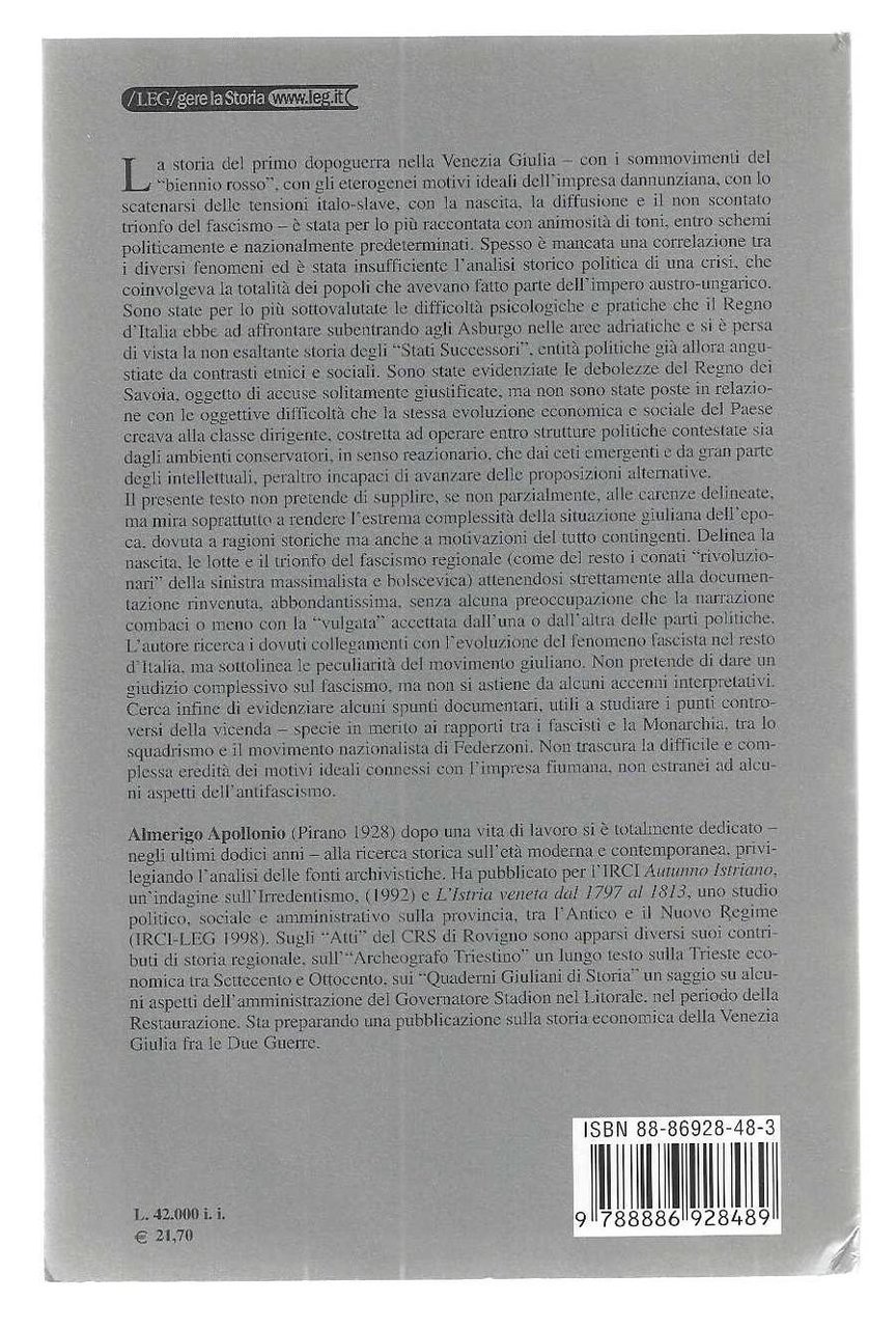 "Dagli Asburgo a Mussolini" "Venezia Giulia 1918-1922"