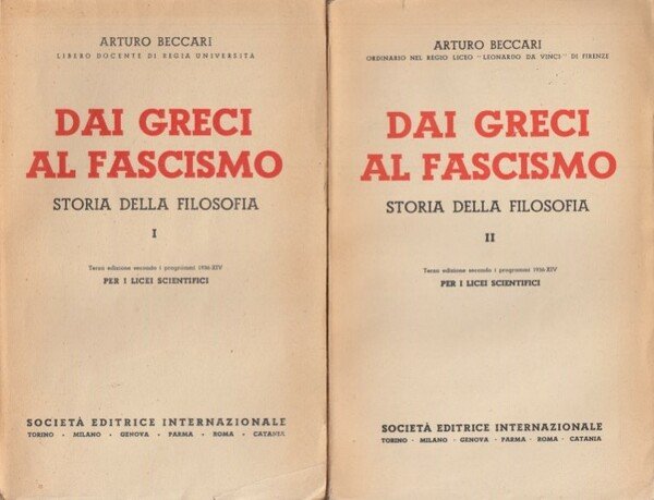 Dai greci al fascismo. Storia della Filosofia, Volume I Volume II