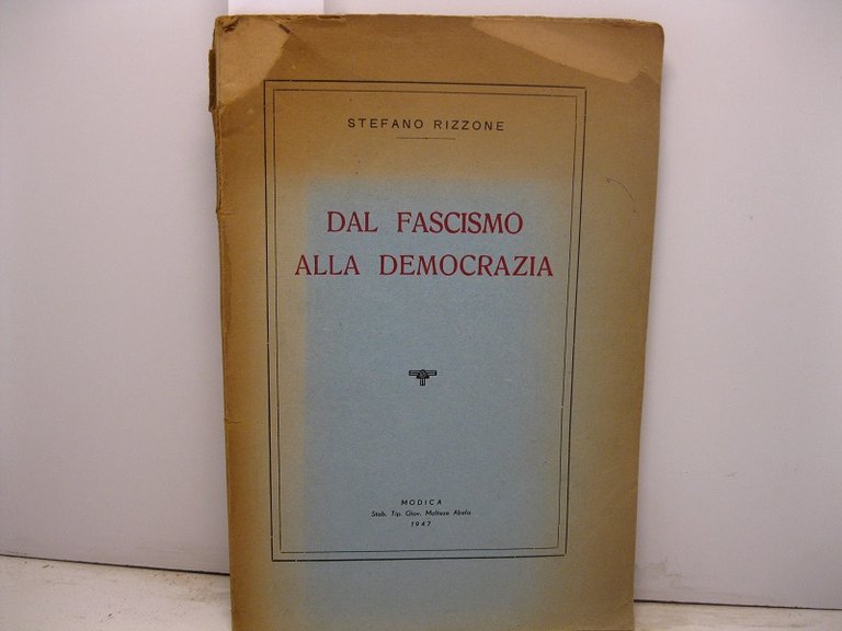 In 8, pp. 147 + (5). Qualche mancanza al marg. sup. del p. ant. Brunitura uniforme ai p. Br. ed. Testo di quest'avvocato, originario di Modifica, che si rivolge ai giovani, i quali, dopo la caduta dell'ideologia fascista, erano privi di una nuova guida politico-culturale: 'abbiamo avuto la sensazione precisa che i giovani, in quel momento, erano come i minori che, perduti i genitori, si trovavano ad un tratto lanciati nella vita, in balia di loro stessi, facile preda delle lusinghe del mondo.'.