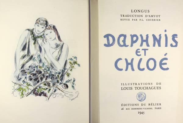 Editions du Bélier, Paris, 1945. 2 volumes in/4 (28 x 19 cm) en feuilles sus couvertures rempliées et illustrées chemises et étui cartonnés, 85 illustrations de Louis Touchagues dont certaines réhaussées en couleurs, 116 & 109 pages. Exemplaire très frais, numéroté (n°443/700) sur vélin pur chiffon à la forme des papeteries de Lana. Traduction Amyot Monod 7255.