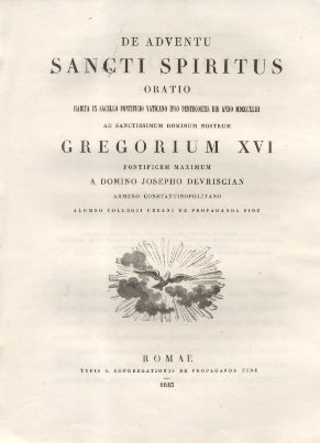 De Adventu Sancti Spiritus. Oratio habita in Sacello Pontificio Vaticano ad Sanctissimum Dominum Nostrum Gregorium XVI Pont. Max. a Josepho Devriscian.