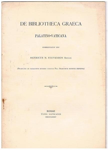 De bibliotheca Graeca Palatino-Vaticana (praefatio ad catalogum eiusdem codicum Pal. Graecorum Seorsum Expressa).