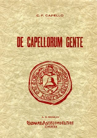 In-8°, pp. 133, brossura editoriale con titolo e illustrazione in rosso. Numerosi alberi genealogici e illustrazioni a colori (riproduzioni di blasoni nobiliari) e in b.n. n.t. e f.t. Ritratto dell'autore in antiporta. Perfetto stato. Prima e unica edizione, stampata in sole 500 copie numerate (n° 342). Ricerche genealogico-araldiche sulla famiglia Capello.