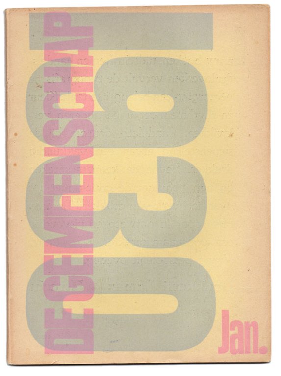 PERIODICOEdizione originale.In ottime condizioni.Notevolissima grafica di copertina per questo fascicolo del mensile cattolico ‘De Gemeenschap’ (La comunità). Non firmata, ma attribuita al designer neoplasticista Gerrit Rietveld. All’interno, interessante tavola parolibera — o calligramma — di Jan Engelman (tra i fondatori del mensile), che si svolge sulle pp. 30-33.