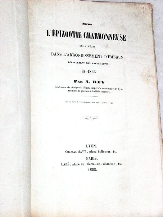 De l'épizootie charbonneuse qui a régné dans l'arrondissement d'Embrun, département des Hautes-Alpes en 1853.