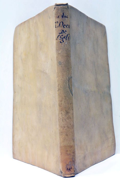 1 feuillet blanc. 7 feuillets. 174 pages. (21,5x16,5 Cm). Plein velin de l'époque. Dos lisse. Titre manuscrit . Plats légèrement deformés. Tache d'encre masquant un cachet ancien sur la page de titre. Rousseurs. Petite manque de papier sur la marge page 65 (sans manque de texte). Rousseurs. Traité théologique dédiée à un évêque breton sur les dispositions du droit canon concernant le patronage. Beaux culs-de-lampe gravés.