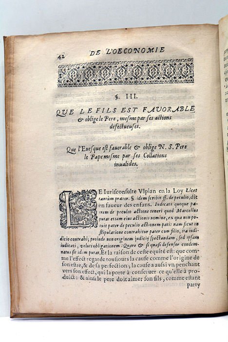 De l'Oeconomie de l'Eglise. Remarquée particulièrement pour le Patronnage Ecclésiastique. A Monseigneur l'Evesque de Sainct Brieu.