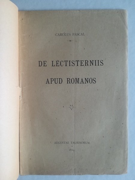 In 8 (cm 14,5 x 22), pp. 8. Brossura muta coeva con omaggio autografo al piatto anteriore. Estratto editoriale dalla Rivista di Filologia e d'Istruzione Classica. Saggio sul lectisternium, l'uso sacrale di offrire un banchetto ad una divinita'