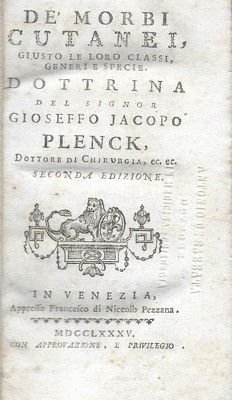 De' morbi cutanei, giusto le loro classi, generi e specie. Dottrina del signor Gioseffo Jacopo Plenck (.) Seconda edizione.