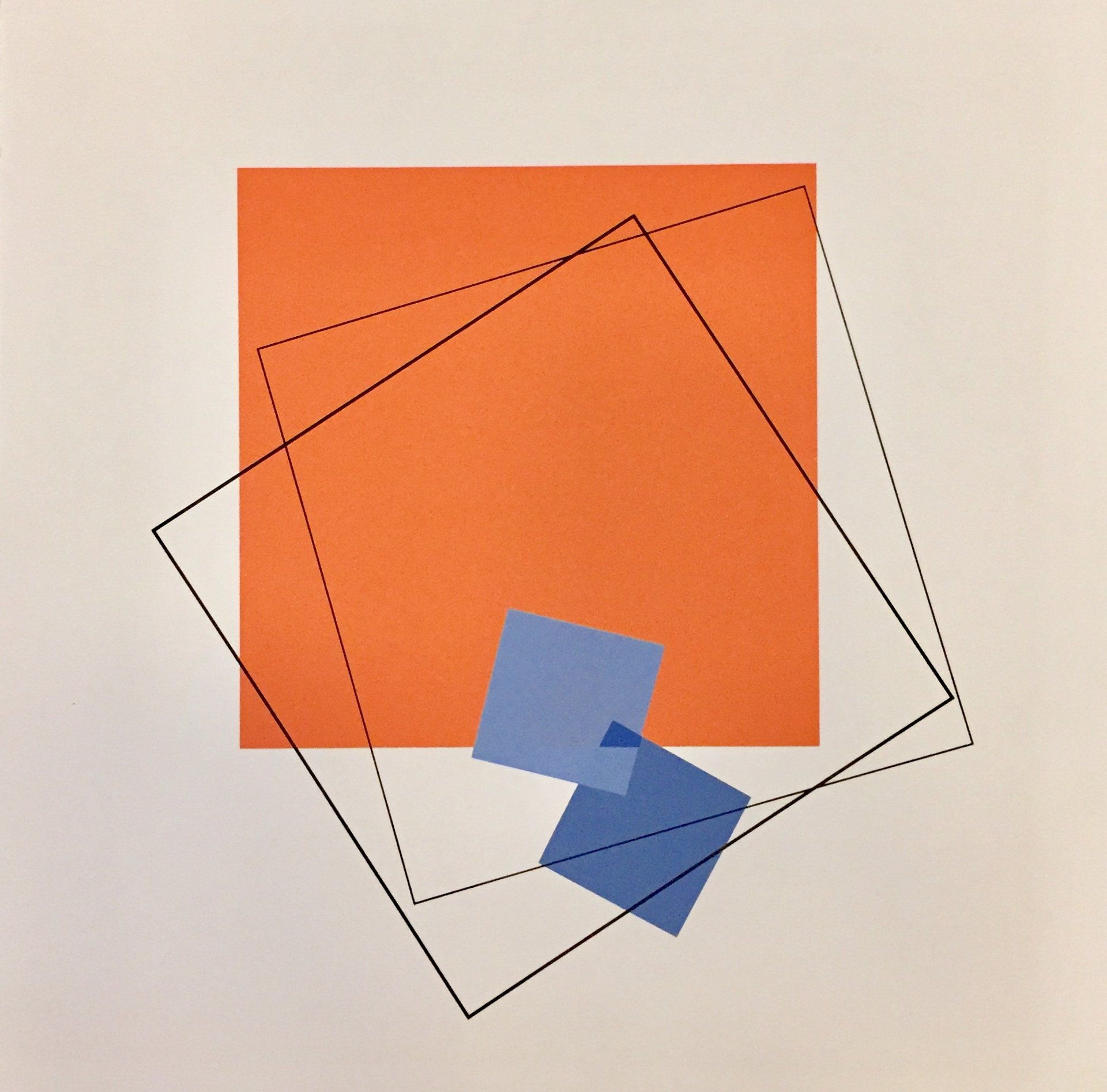 Serigrafia a colori su cartoncino morbido, protetta da un bifolio di carta velina, prova colore per il volume 'In quadrato'", firma dell'artista al verso, in ottimo stato.