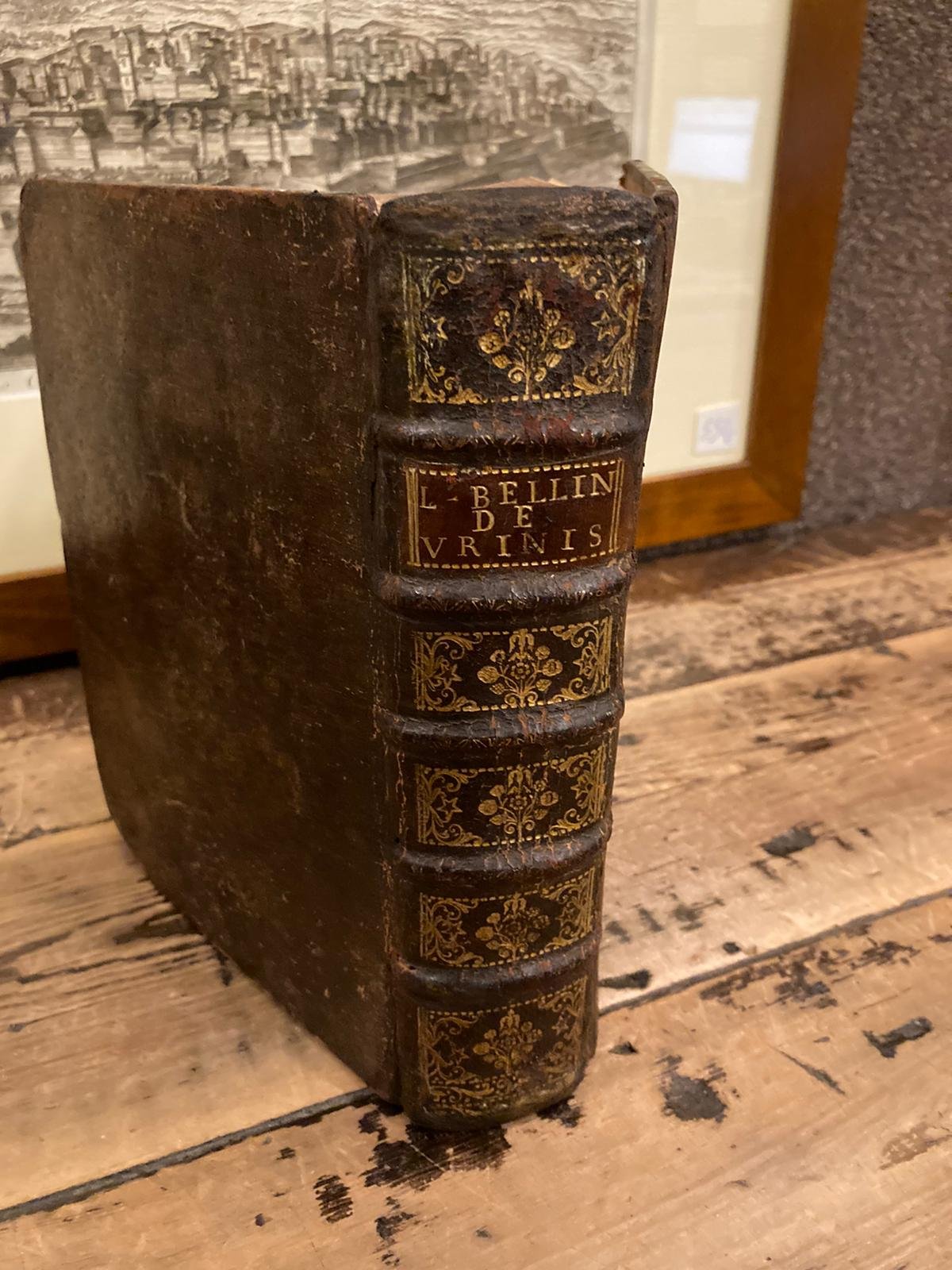 In-4° (20.5x16 cm), piena pelle coeva con titolo su tassello al dorso a cinque nervi con scomparti ornati da fregi fitomorfi dorati, tagli spruzzati rossi. Pp (24), 679, (25), marca tipografica al frontespizio stampato in rosso e nero, capolèttere ornati e finali xilografici. Alcuni fascicoli bruniti in modo uniforme (circa 50 pagine). Minimi difetti alla legatura. Più che buon esemplare. Quarta edizione (la prima è del 1683) emendata e dunque più corretta delle precedenti. Nota introduttiva del celebre medico e scienziato olandese Herman Boerhaave. Uno dei testi secenteschi di riferimento per le tematiche trattate grazie alla rigorosa impostazione scientifica. L'autore basandosi su un approccio fisiologico-sperimentale critica le pratiche empiriche non scientifiche (quali ad es. l'uromanzia). Fenomeni urologici; pulsazioni e circolazione sanguigna; febbri ricorrenti o episodiche (tra cui vaiolo e morbillo); colpi apoplettici, epilessia, melancolia, vertigini; malattie cardiache e malattie polmonari (pleuriti, enfisemi). Lorenzo Bellini (Firenze, 1643-ivi, 1704), allievo di Francesco Redi (cui la presente opera è dedicata a stampa) del Marchetti e del Borelli, si sforzò di applicare una teoria meccanica della fisiologia umana, sviluppata attraverso postulati, teoremi e corollarî. Autore a soli 19 anni di un testo anatomico referenziale, 'Esercitazione anatomica intorno alle strutture dei reni', a 20 assurse alla cattedra di filosofia e medicina teorica a Pisa, passando poi a quella di anatomia, mantenuta per un trentennio, prima di cadere in disgrazia presso il proprio protettore, il Granduca Ferdinando II. Tornato nella natia Firenze, divenne medico particolare di Cosimo III, nonché medico consulente di Clemente XI. Fu anche poeta, con il ditirambo 'La Bucchereide', celebrante i buccheri, membro dell'Arcadia, nonché matematico e studioso di filosofia, ma il suo massimo apporto scientifico concerne lo studio dell'anatomia e fisiologia dei reni. Krivatsy, 1076. Heirs of Hippocrates, 427. Dictionary of Scientific Biography, I, 593. Osler, 2003. Wellcome, II, 140. Hirsch-Hübotter, I, 447. Haeser, II, 286. Blake, 40. Sul Bellini, Fabroni, Vitae Italorum, IV, passim; Ginguené in Michaud, Biogr. Universelle, IV, 119-121. Corniani, I secoli della letter. ital., V, p. 137; Carini, L'Arcadia, I, p. 199 e sgg. Capparoni, I, pp. 67-70.