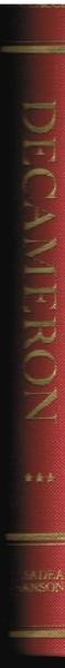 3 VOLUMI. CM. 24X31.5, DAL VOL. I AL VOL. III PP. 976 CON CENTINAIA DI ILLUSTRAZIONI A COLORI DELLE OPERE D'ARTE CHE LUNGO I SECOLI GLI ARTISTI DI OGNI TEMPO E PAESE HANNO DEDICATO AD OGNI SINGOLO FATTO DELLE DIECI GIORNATE IN CUI E' ARTICOLATO IL DECAMERONE; I TRE VOLUMI SONO LEGATI IN PIENA TELA ROSSA CON TITOLI E DECORAZIONE AI DORSI E AI PIATTI IN ORO; L'OPERA E' MAGISTRALMENTE CURATA E DIRETTA DA VITTORE BRANCA UNANIMAMENTE CONSIDERATO IL PIU' IMPORTANTE ESPERTO DI BOCCACCIO E DEL DECAMERONE