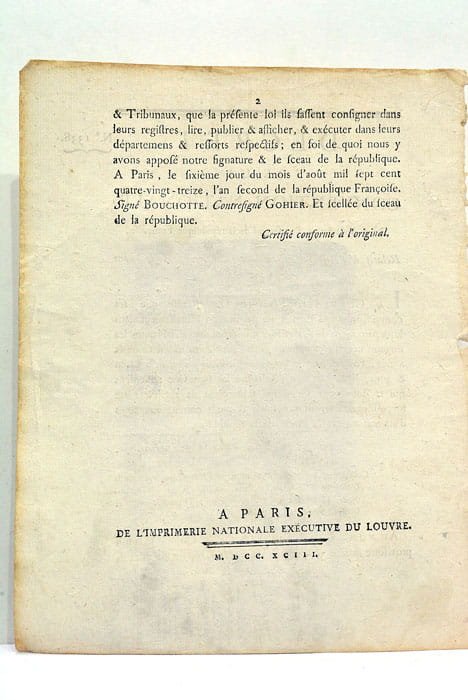• Paris, De l'Imprimerie Nationale Exécutive du Louvre, 1793.