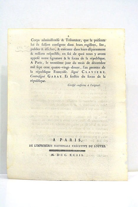 DÉCRET DE LA CONVENTION NATIONALE qui accorde Cinq cent mille livres au Département de Paris, pourservir à acquitter les Billets dits de parchemin et de la Maison de secours.