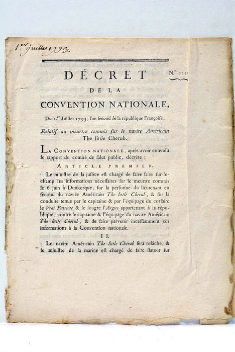 DECRET de la Convention Nationale, relatif au meurtre commis sur le Navire Américain The Little Cherub.