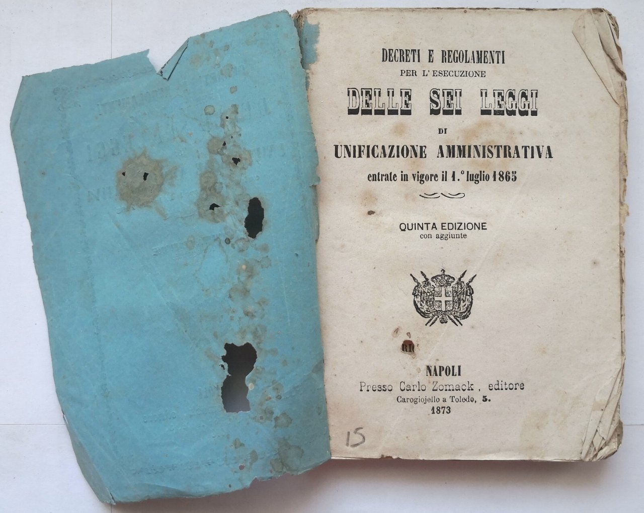 DECRETI E REGOLAMENTI DELLE SEI LEGGI DI UNIFICAZIONE AMMINISTRATIVA 1873 Libro