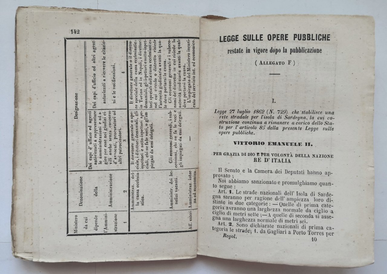 DECRETI E REGOLAMENTI PER L'ESECUZIONE DELLE SEI LEGGI DI UNIFICAZIONE AMMINISTRATIVA entrate in vigore il 1 luglio 1865.