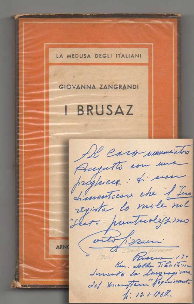 AUTOGRAFOPrima edizione.CON AUTOGRAFO.Ottimo esemplare completo dell’originale acetato trasparente protettivo.Notevole autografo del regista Carlo Lizzani, vergato in grande, sul set dello spaghetti western «Requiescant», alla prima carta della seconda opera di Giovanna Zangrandi: «Al caro [annunciatore?] Augusto con una preghiera: di non dimenticare che il Suo regista lo vuole sul “seet” [sic] puntualissimo. Carlo Lizzani. Roma 13º km della Tiburtina durante la lavorazione del western “Requiescant” li. 13.1.1967». In «Requiescant» ebbe una parte anche Pier Paolo Pasolini nel ruolo del prete Don Juan.