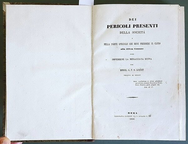 DEI PERICOLI PRESENTI DELLA SOCIETA' E DELLA PARTE SPECIALE CHE DEVE PRENDERE IL CLERO alla difesa Comune onde impedirne la Minacciata Ruina