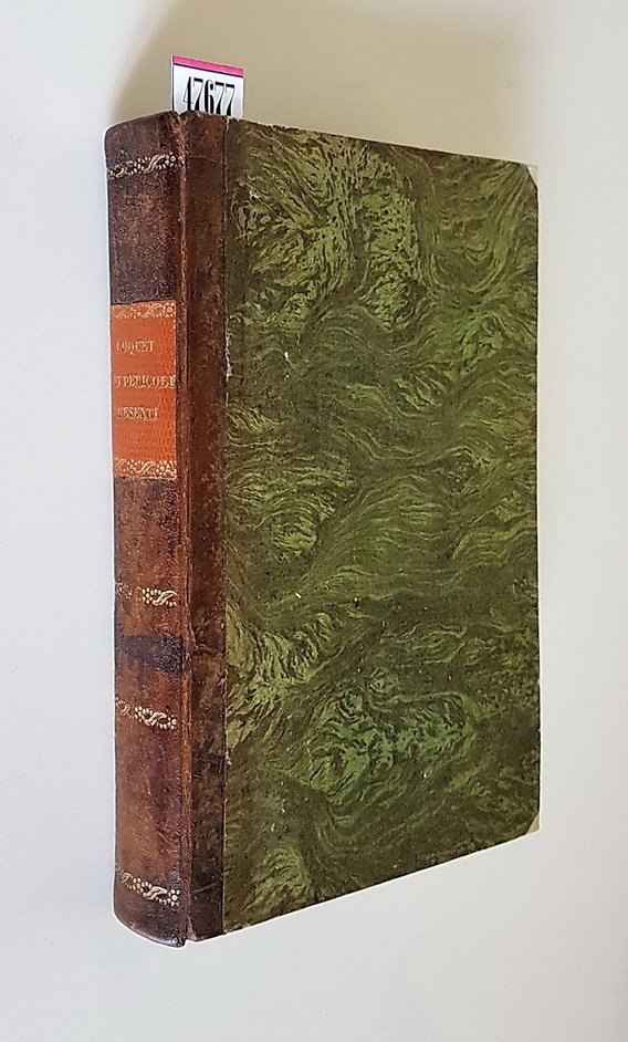 Vol. in -8 (15,5 x 22 cm.), legatura d'epoca m.pelle marrone, piatti cartonati marmorizzati verdi, filetti e titoli in oro entro riquadro arancio, tagli dei fogli spruzzati azzurri, pp. (8), 403, (1). In condizioni molto buone.